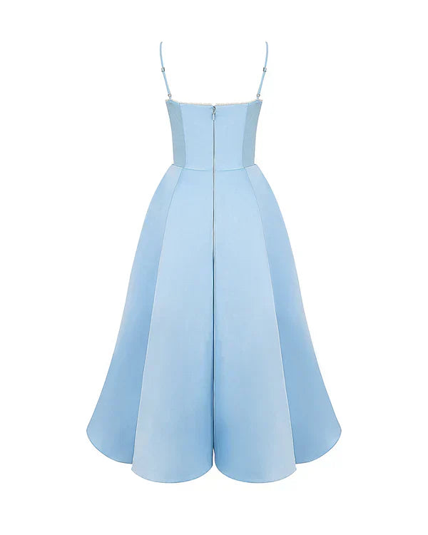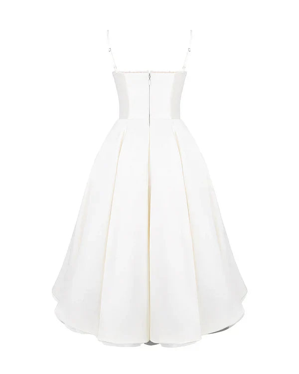 Nuestro vestido midi “Selene” combina elegancia y encanto con su tejido satinado brillante y suave malla elástica. El corpiño con ballenas realza la cintura y el escote corazón con copas aporta soporte y feminidad. Los tirantes ajustables garantizan un ajuste perfecto, mientras que la falda midi con tul añade volumen y un toque de glamour sofisticado.